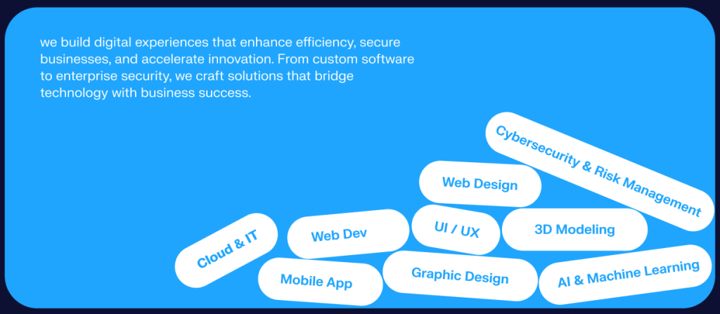 Every solution we create is a strategic fusion of innovation, intelligence, and security—designed to empower businesses, optimize operations, and drive growth. We don’t just implement technology; we engineer digital transformation that reshapes industries and accelerates success.